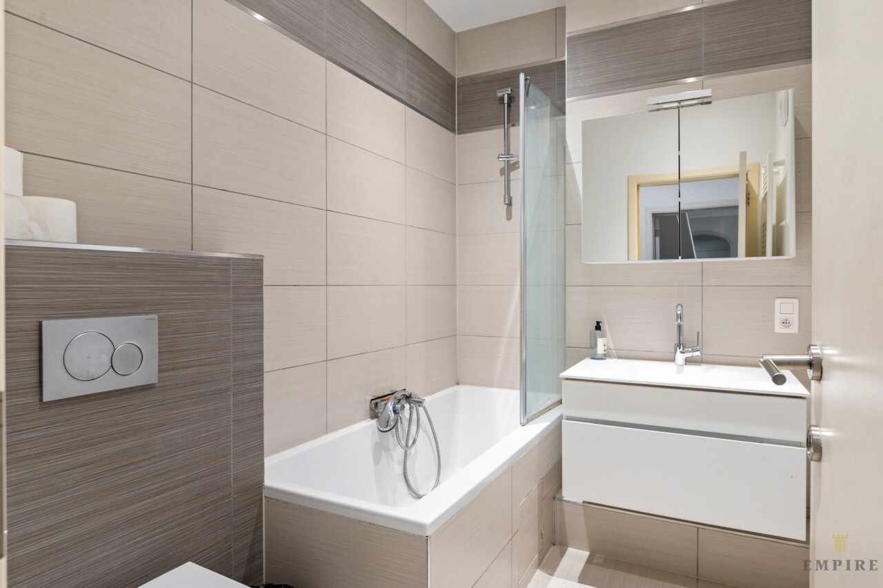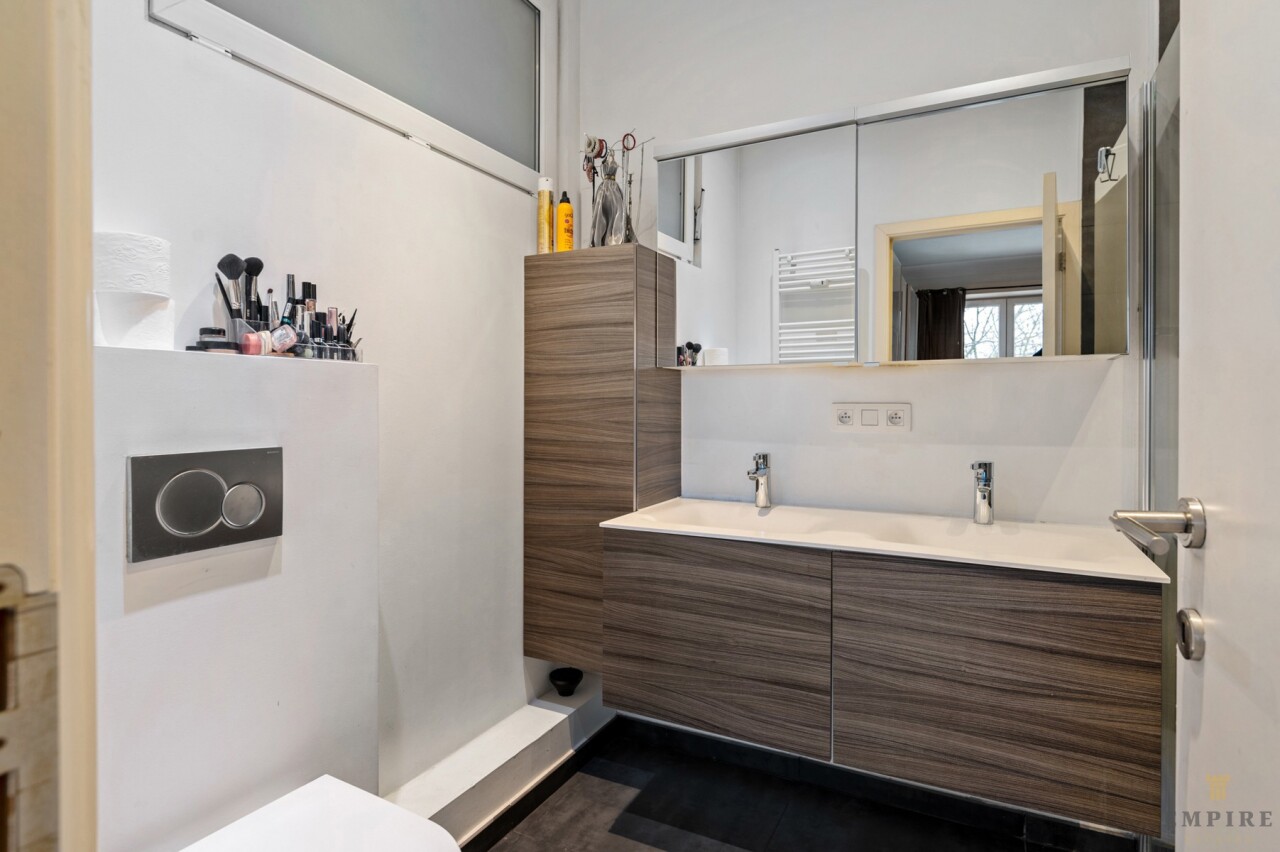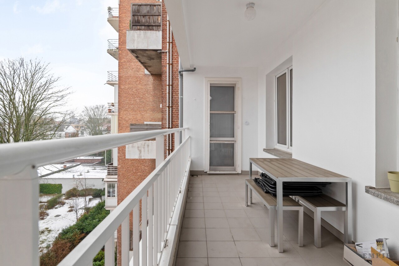 Troeven: terras met zicht op het park en de gemeenschappelijke tuin, privatieve kelderberging en gelegen op de 4de verdieping van een goed onderhouden gebouw.